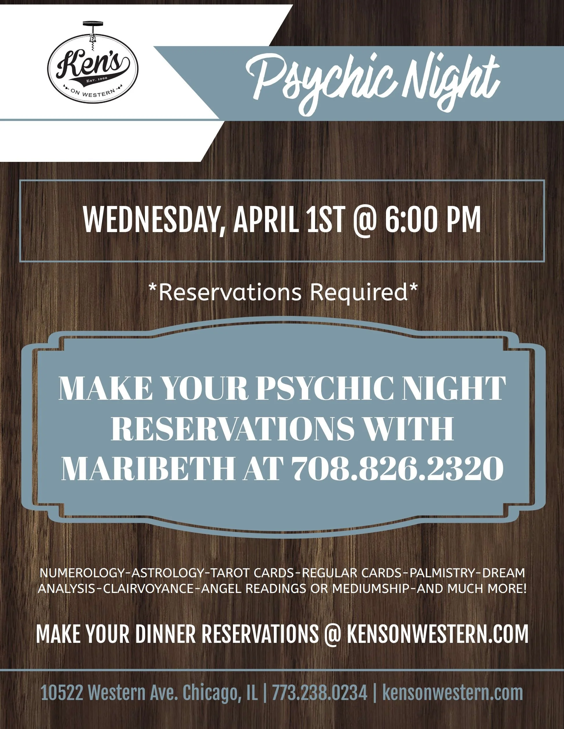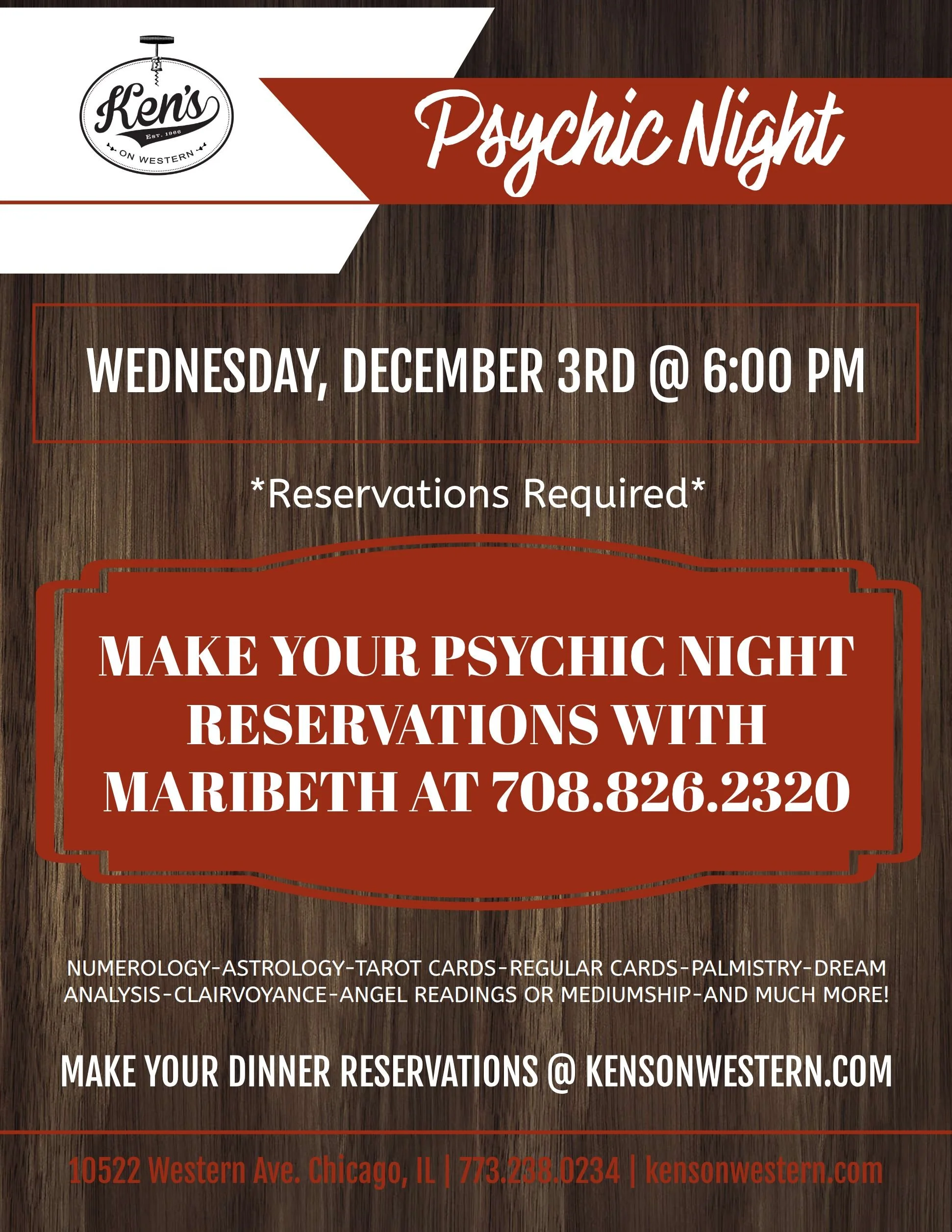 Reserve below or call (773) 238–0234 from 4pm – 10pm daily to make a reservation